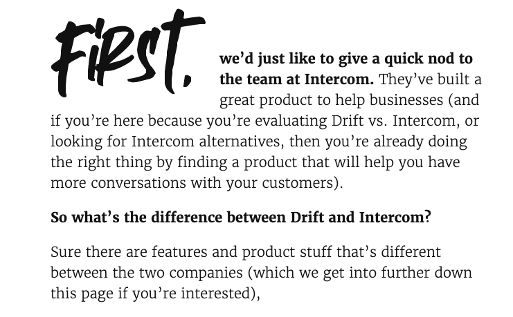 Drift’s webpage on how they’re different from Intercom is an excellent example.